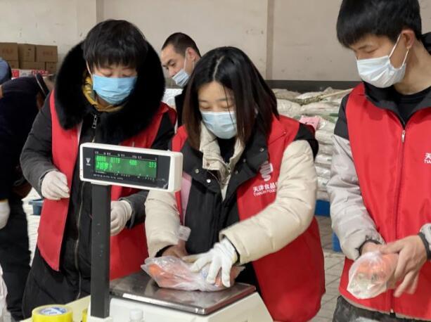 商貿(mào)公司嚴格執(zhí)行生產(chǎn)、物流、商品全鏈條的防疫消殺流程,保證人、車、物的防疫安全。特殊時期,居民為減少外出次數(shù),一次性采購量較大,為此,公司加大產(chǎn)品供應力度,凌晨5點滿載蔬菜的貨車就陸續(xù)抵達南開區(qū)分倉,7點公司員工到崗對蔬菜進行分揀、打包、稱重,9點新鮮、充足的蔬菜準時到達各保供點位?;A民生食品一應俱全,保證各點位供應不脫銷、不斷貨,便民、貼心的服務得到了周圍居民的一致好評。“食品集團的保供點位解決了我們?nèi)济贾?,我們這小區(qū)老年人多,給我們帶來了便捷,小伙子們不怕麻煩,耐心為我們服務,讓我們心里很踏實。”居民李大爺拎著剛買完的新鮮蔬菜安心的說道。