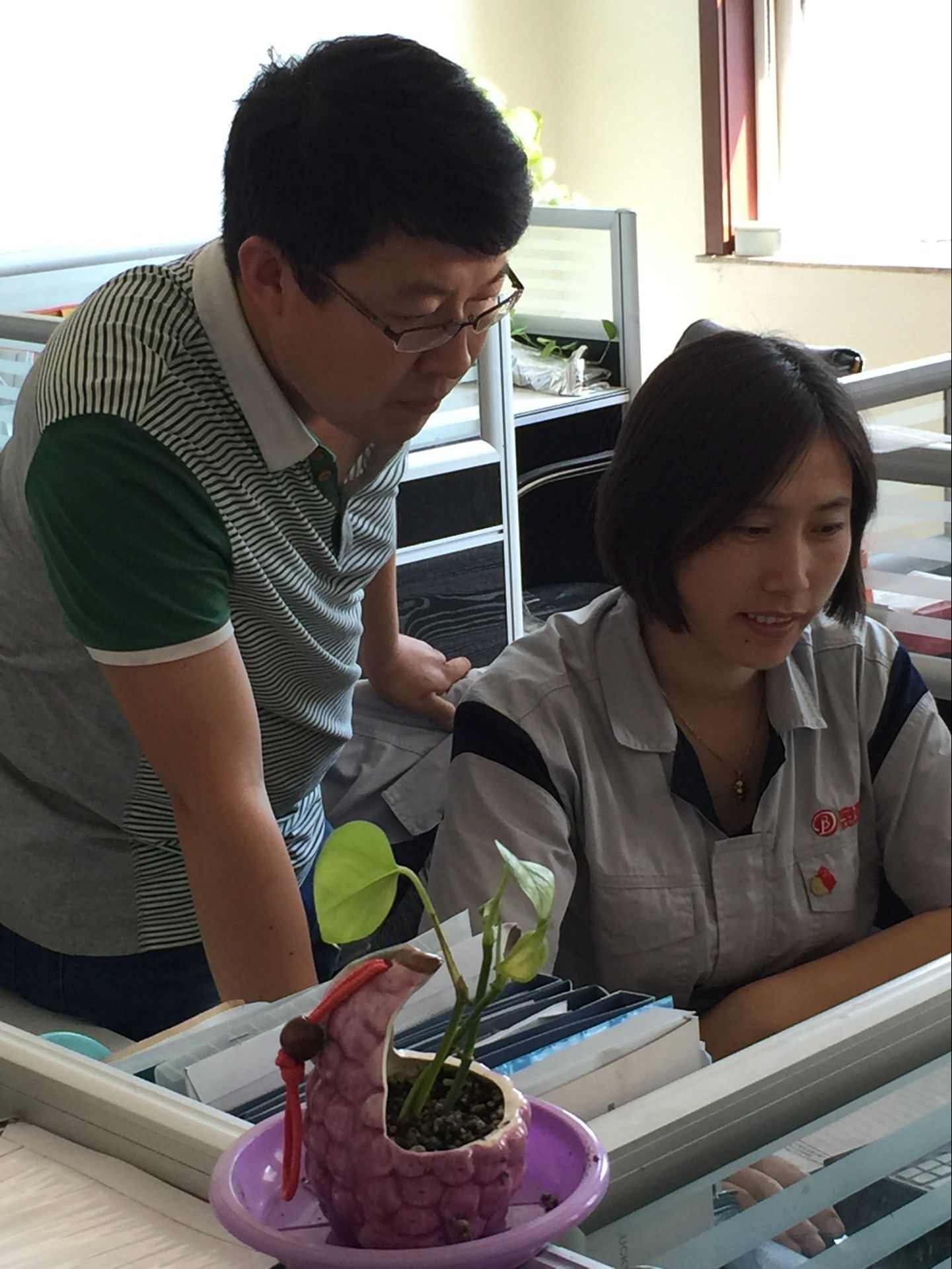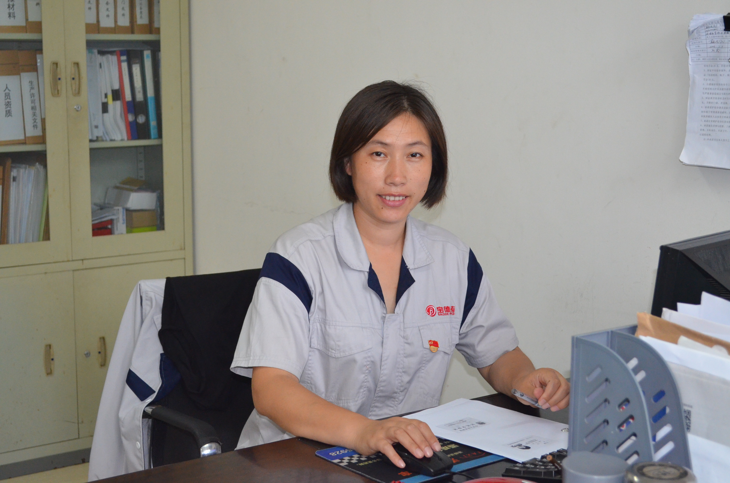 “宮姐,我要充飯卡”、“宮姐,幫我領(lǐng)一支筆”、“宮姐,有兩位新入職的員工,你帶領(lǐng)他們熟悉一下公司環(huán)境”、“宮姐,聯(lián)系一下打印機(jī)維修公司,打印機(jī)出故障了......”早上七點(diǎn)半,在寶德公司辦公室里,辦公室主任宮鳳賢開始了一天既瑣碎又忙碌的工作。只見(jiàn)她面帶笑容,和顏悅色,跟大家打招呼的同時(shí),熟練利索地幫助每位同事解決問(wèn)題。雖然,她也是一名80后,但是大家都喊她“宮姐”。